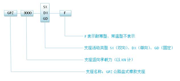 適用溫度范圍 a 、常溫型支座:適用于-25 ℃ ~+ 60 ℃ b 、耐寒型支座:適用干-40 ℃ ~+60 ℃ ,代號為F 。