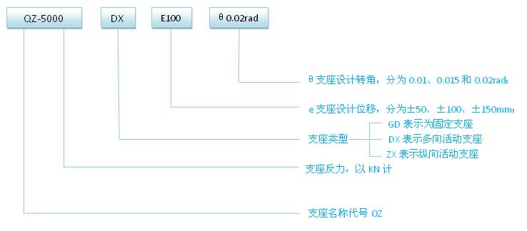 A 、雙向活動(dòng)支座:具有多向位移性能,代號(hào)DX ;