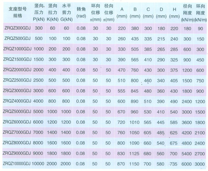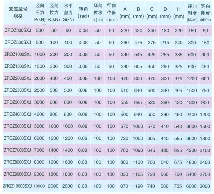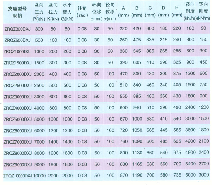 支座分為固定減震型、單向位移減震型和雙向位移減震型,